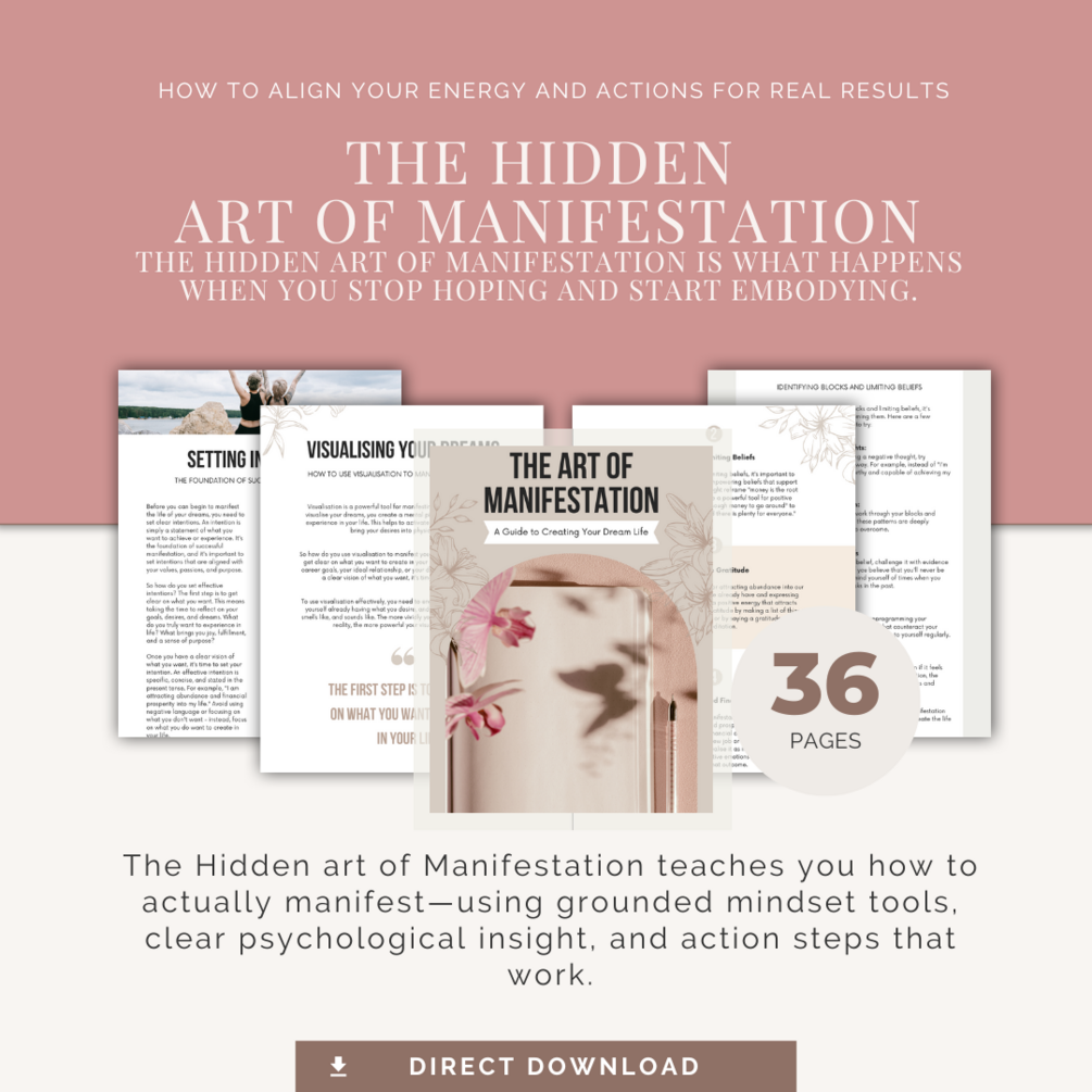 Stop scrolling through fluffy quotes that don’t change your life. The Hidden Art of Manifestation isn’t a hype book full of empty promises or glittery journaling tips for a “higher vibe” life. It teaches you how to actually manifest—using grounded mindset tools, clear psychological insight, and action steps that work.